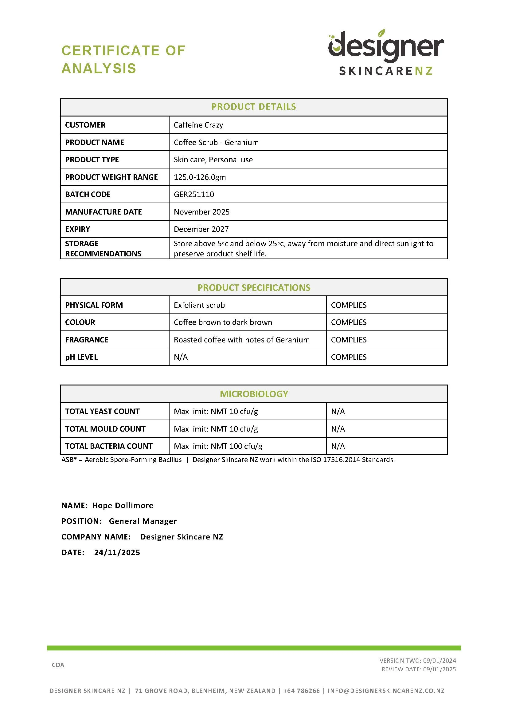 Certificate of Analysis